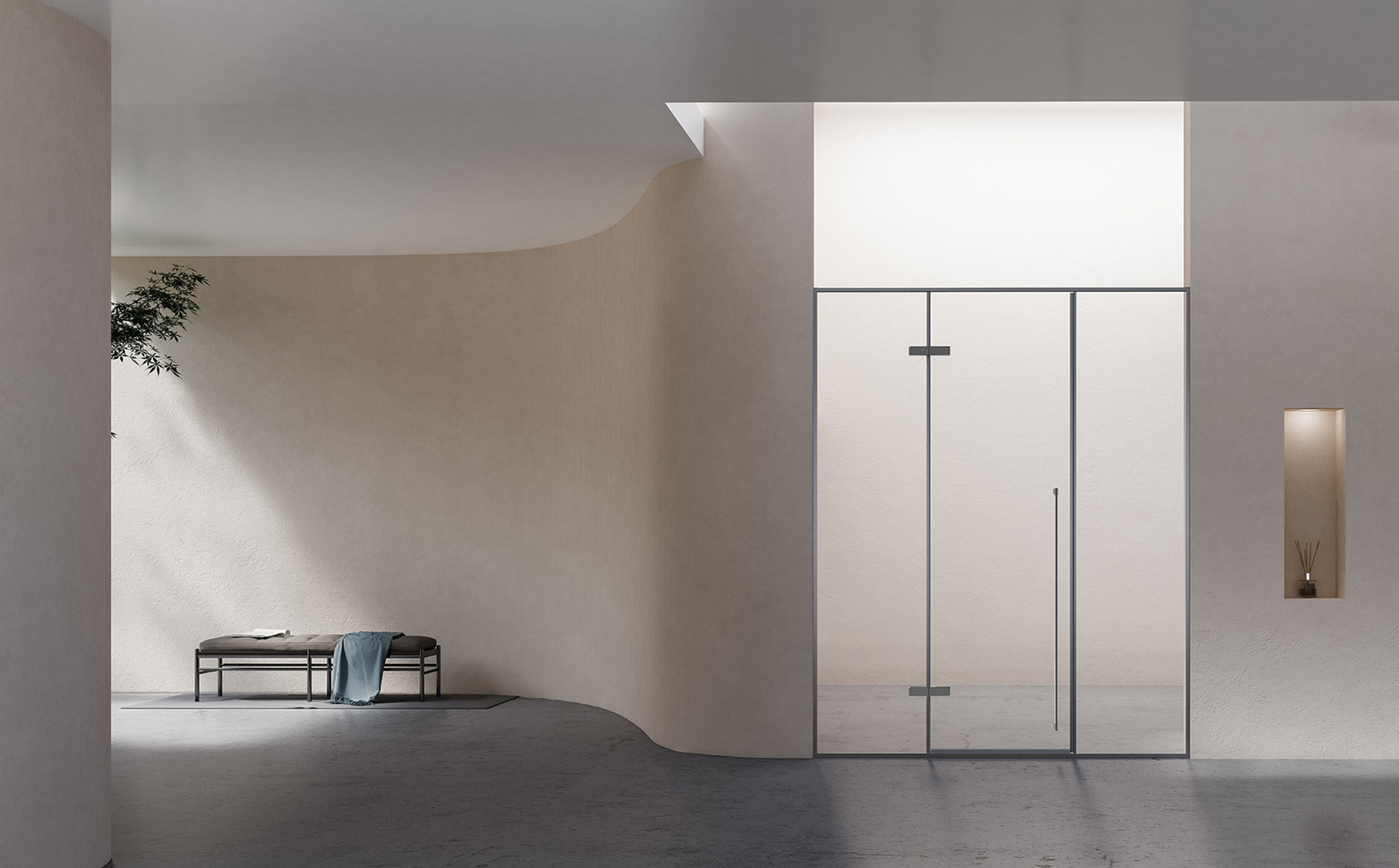獨(dú)特切面,簡(jiǎn)而隱逸。隱藏式轉(zhuǎn)軸,內(nèi)開(kāi)時(shí)螺絲不外露,外開(kāi)90°限位,穩(wěn)固防下墜